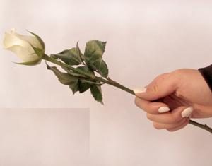 - Chọn một bông hồng trắng, cầm phần thân sao cho cách đài hoa khoảng 15 cm, dáng cầm như trong hình.